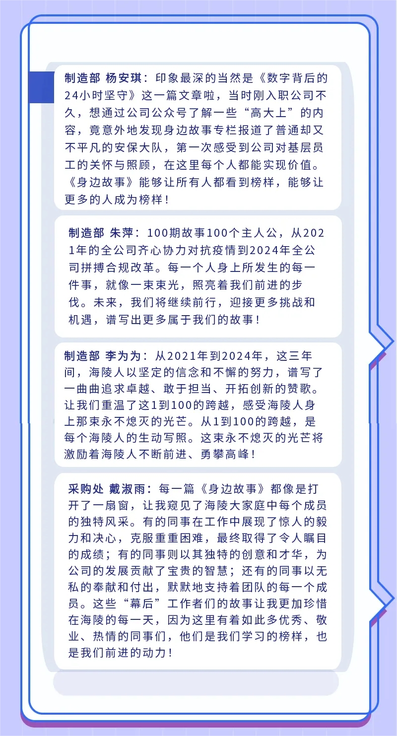 在技術部、制造部,有這樣一群海陵人,他們腳踏實地,行穩(wěn)致遠,為助力海陵的生產(chǎn)運行用心付出。他們用一言一行,踐行海陵價值觀,譜寫著屬于海陵人身邊的精益故事。