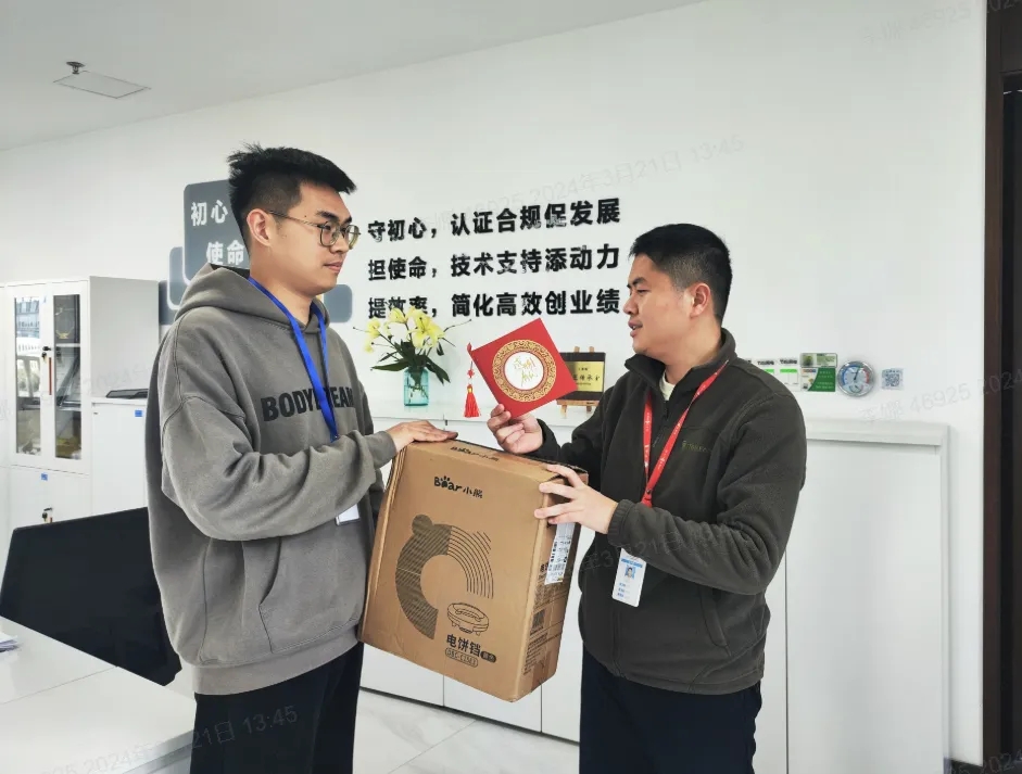海陵衷心對他們的付出表示感謝,并為其準備了感恩卡和禮物,直屬領導“驚喜出現(xiàn)”,將手寫感謝卡和禮物交給他們!