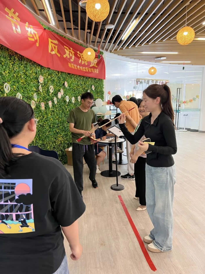 投壺也叫“射壺”,是古代士大夫在宴飲時所做的一種投擲游戲,是一種從容安詳、講究禮節(jié)的活動。投壺小秘訣:在投擲時,保持平衡,雙腳分開,身體重心向前,眼里和手感是重中之重。這個游戲可以鍛煉大家的動手能力和專注力,在投壺的同時也能培養(yǎng)大家的判斷力及準確性,是一項充滿趣味和挑戰(zhàn)的游戲。萬萬沒想到我們員工中誕生的神射手就是一箭三聯(lián)的方練。