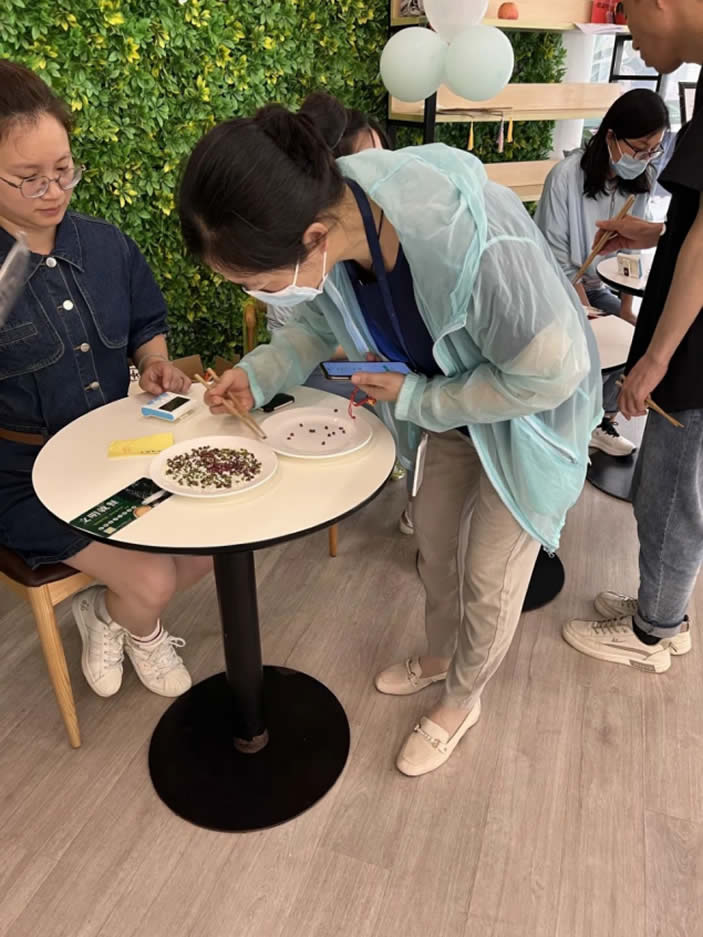 紅豆生南國,春來發(fā)幾枝。這蜜豆不是普通的蜜豆,是王維詩里面的蜜豆。夾蜜豆可是對手穩(wěn)有很高的要求的,打飯愛“手抖”的員工可要注意啦,手一抖將前功盡棄。夾蜜豆要領(lǐng):手穩(wěn)、氣平、心態(tài)好。大家還記得當時自己夾了幾顆蜜豆嗎?而夾到最多蜜豆獲得蜜豆王稱號的就是收獲滿滿35枚小蜜豆的楊新悅。
