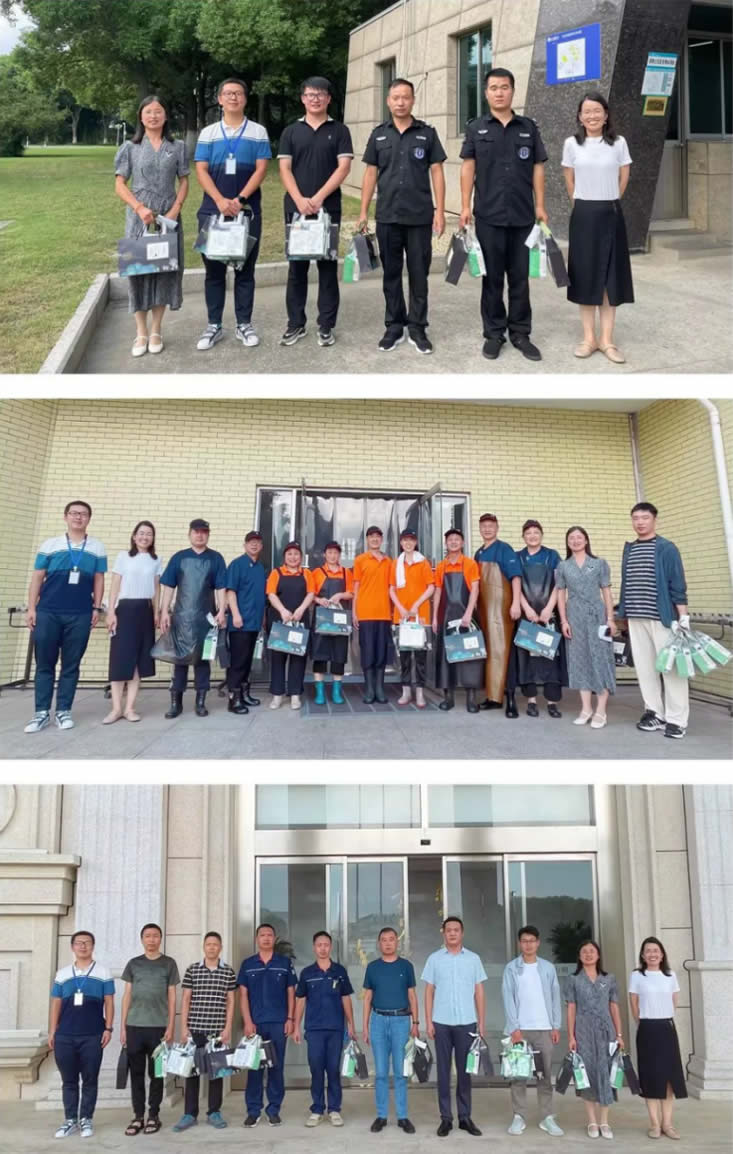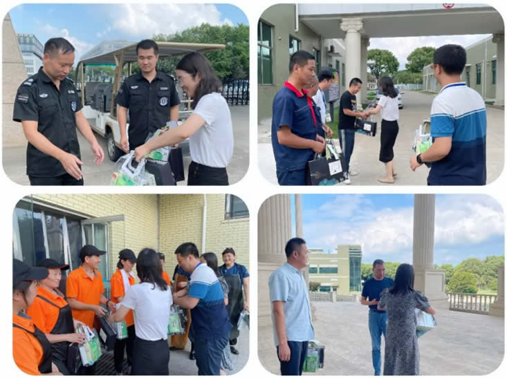 南京海陵黨支部書(shū)記李靜、南京海陵工會(huì)主席徐秋霞、南京海陵辦公室主任車越慰問(wèn)奮斗在一線的員工,為他們送上了防暑禮包及養(yǎng)生茶禮盒。
